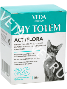 ACTIFLORA синбиотический комплекс для кошек предназначенный для введения полезной микрофлоры в составе кормовых рационов животных с раннего (3-х месячного) возраста. Допустимо применение беременным и кормящим самкам. Употребление корма способствует восстановлению баланса кишечной микрофлоры, что благотворно влияет на весь организм.