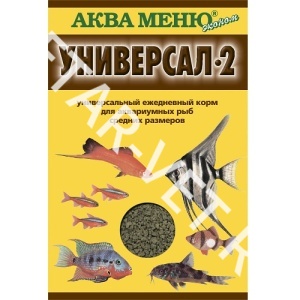 «УНИВЕРСАЛ-2» — универсальный ежедневный корм для большинства видов аквариумных рыб: живородящих, цихлид, харациновых, лабиринтовых, карповых, различных сомов и др. рыб длиной 6-12 см.