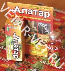 Это универсальный препарат, он эффективен против множества вредителей (плодожорок, белянок, совок, листоверток, тлей, колорадского жука, медяницы, трипсов, белокрылок, долгоносиков, клещей и т.д. ). «Алатар» защитит от вредителей большинство садовых и огородных культур на Вашем участке (капусту, огурцы, томаты, яблоню, смородину, малину, цветы и т.д.) 5мл/ 10л