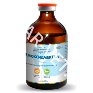 АМОКСИДЖЕКТ LA-ТРВ – суспензия для инъекций, в 1 мл которого содержится 150 мг амоксициллина тригидрата, вспомогательные вещества (сорбитан моноолеат этоксилированный, метилпарабен, пропилпарабен, триглицериды средней цепи, спирт бензиловый, натрия гидроксиметансульфинат) и основа (вода для инъекций).