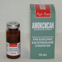 Показания: КРС, МРС, свиньям, собакам и кошкам при первичных и вторичных инфекциях бактериальной этиологии, возбудители которых чувствительны к амоксициллину (инфекциях ЖКТ;дыхательных путей;мочеполовой системы; суставов;мягких тканей и кожи;некробактериозе; пупочных инфекциях; атрофическом рините; синдроме мастит-метрит-агалактия)