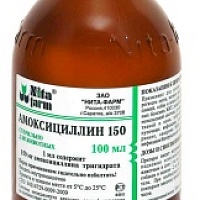 Действующее вещество:амоксициллина тригидрат 150 мг/мл