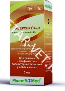 •собакам менее 10 кг и кошкам: 0,1 мл/1 кг Аверсекта К&С 0,2%