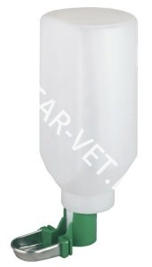 Автопоилка состоит из прочной пластиковой ёмкости и металлического лоточка, в который вода поступает постепенно, по мере испарения или выпивания её кроликами. Простая и удобная в использовании.