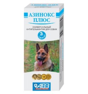 1 таблетка «Азинокс плюс» на 10 кг массы собаки