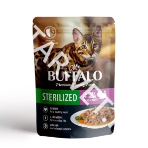 Полнорационный влажный корм Mr. Buffalo с индейкой взрослых стерилизованных котов и кошек изготовлен из натуральных, гипоаллергенных и легко усваиваемых ингредиентов. В оптимальном количестве содержит животные белки и жиры, питательные вещества, а также микроэлементы, необходимые для жизнедеятельности вашей кошки. Благодаря сбалансированному составу поддерживает работу желудочно-кишечного тракта, иммунитета, а также других органов и систем организма. Рацион разработан на основе исследований в области питания домашних животных, учитывающий особенности организма стерилизованной кошки, изготовлен специально для того, чтобы помочь животному чувствовать себя здоровым и активным.