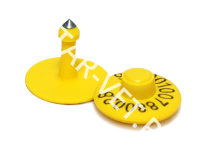 Бирка круглая желтая 27*27 с № (мапа+папа с мет. наконечником)