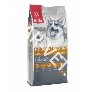 Напомним вам, что взрослые собаки, с одной стороны, должны получать достаточно энергии для активной жизни, а с другой — не набирать лишний вес. Сухой корм Blitz Adult Chicken & Rice для собак всех пород с курицей и рисом содержит оптимальное количество животных белков и жиров, чтобы ваша собака всегда была в отличной форме.