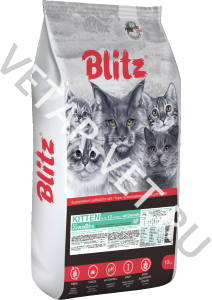 Сбалансированный сухой корм класса супер премиум обеспечивает особые потребности растущих котят, но также может быть использован для беременных и кормящих кошек: Blitz Kitten содержит оптимальный баланс белков, жиров и других питательных веществ. Живые пробиотики, добавленные в формулу корма "Блиц" для котят, способствуют правильному росту и развитию малышей, стимулируют формирование крепкого иммунитета. Входящий в состав корма фенхель снижает газообразование и успокаивает кишечник. Сухой корм Blitz с индейкой для котят, беременных и кормящих кошек учитывает особенности нежного и чувствительного пищеварительного тракта котёнка, а также необходимость в энергии для игр и познания мира.