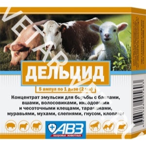 Показания: для обработки овец, крупного рогатого скота, свиней, кроликов и собак при арахно-энтомозах, а также для дезинсекции и дезакаризации животноводческих помещений и других объектов ветеринарного надзора