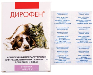Дирофен таблетки назначают кошкам и собакам с 3-недельного возраста с профилактической и лечебной целью при нематодозах (токсокароз, токсаскаридоз, унцинариоз, трихоцефалез, анкилостомоз), цестодозах (тениидоз, дипилидиоз, эхинококкоз, дифиллоботриоз, мезоцестоидоз) и смешанных нематодо-цестодозных инвазиях.