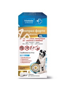 Антигельминтные таблетки для собак крупных пород XL и щенков. (1таб. на 15 кг) 6 табл. для лечения и профилактики гельминтозов и лямблиоза.Фенпраз форте таблетки, благодаря комбинированному составу, обладает широким спектром антигельминтного действия против круглых и ленточных гельминтов, а также простейших рода лямблий, паразитирующих у собак и кошек, включая Toxocara canis, Toxascaris leonina, Uncinaria stenocephala, Ancylostoma caninum, Trichuris vulpis, Echinococcus granulosus, Echinococcus multilocularis, Taenia spp. Multiceps multiceps, Mesocestoides lineatus, Dipylidium caninum, Giardia spp., а также личиночных фаз развития (микрофилярий) Dirofilaria immitis и Dirofilaria repens.