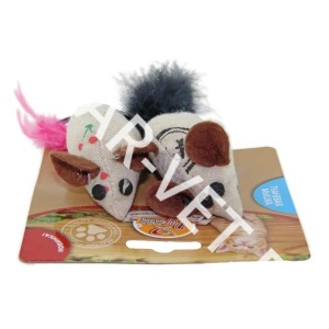 Игрушка д/кошек мышка ткань с кошачьей мятой и пером набор из 2-х штук