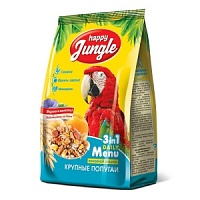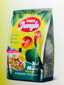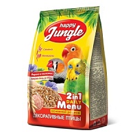 HAPPY JUNGLE - это линейка сухих кормов для грызунов ,кроликов и декоративных птиц . Рационы сочетают в себе полезные и вкусные ингридиенты , необходимые для активной жизни питомца. Сбалансированные смеси на основе зерна,трав,зерновых и травяных гранул с добавлением фруктов,овощей,ягод ,арахиса и ракушечника обеспечивают животных и птиц всеми необходимыми питательными веществами.