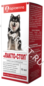 Назначают сукам для лечения ложной беременности и подавления лактации по клиническим показаниям (в случаях раннего отъема щенков), а так же при повышенной секреции гормона пролактина неясной этиологии или вызванной аденомой гипофиза.