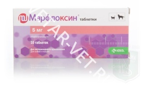 Марфлоксин таблетки применяют для лечения собак и кошек при заболеваниях органов дыхания, желудочно-кишечного тракта и мочеполовой системы, инфекций кожи, мягких тканей и отитов, инфицированных ран и других заболеваний бактериальной и микоплазменной этиологии, возбудители которых чувствительны к марбофлоксацину
