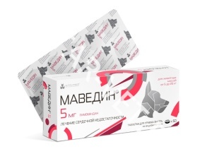 Маведин® назначают собакам для лечения сердечной недостаточности, вызванной дилатационной кардиомиопатией (ДКМП) на бессимптомной (предклинической) и клинической стадиях заболевания, а также при миксоматозной дегенерации двустворчатого или трёхстворчатого клапана на клинической стадии и миксоматозной дегенерации митрального клапана на бессимптомной (предклинической) стадии заболевания