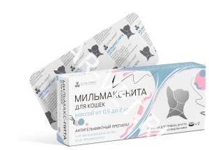 Мильмакс-Нита для кошек от 0,5 до 2 кг: 4 мг мильбемицина оксим, 10 мг празиквантел.