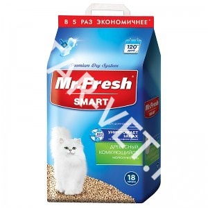 Mr. Fresh SMART– это премиальный комкующийся наполнитель для кошачьего туалета, который производится из натуральной древесины хвойных пород деревьев.