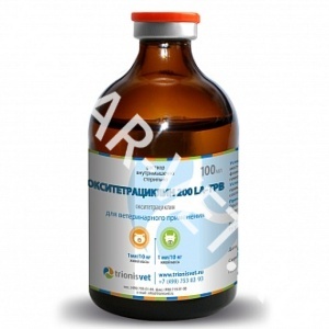 ОКСИТЕРАЦИКЛИН 200 LA-ТРВ – раствор для инъекций, в 1 мл которого содержится 200 мг окситетрациклина дигидрата, вспомогательные вещества (поливинилпирролидон, 1-метил-2-пирролидон, натрия гидроксиметансульфинат, магния оксид, бензиловый спирт, моноэтаноламин, пропилпарабен) и растворитель (вода).