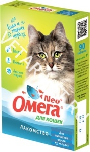Омега Neo+ — вкусное и полезное лакомство для поощрения, баловства и выведения комков шерсти из желудка кошек