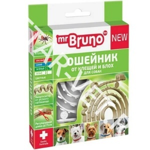 Ошейник «Мистер Бруно» - безопасное и эффективное средство на основе натуральных эфирных масел цитронеллы и лаванды для отпугивания эктопаразитов собак (блох, вшей, клещей, власоедов, летающих насекомых (комары, мошки, слепни): - отпугивает эктопаразитов до 3 месяцев - не влияет на активность животного и уход за ним - водостойкий, не теряет своих качеств при намокании - безопасный для человека и животных. Эфирные масла цитронеллы и лаванды постепенно выделяются на поверхность ошейника, равномерно распределяясь по всему телу животного, эффективно отпугивают насекомых, а также ухаживают за шерстю. Ошейник Мистер Бруно рекомендуется применять: - щенкам с 1 месяца - больным и ослабленным животным - собакам, склонным к аллергии - беременным и кормящим самкам. Регулируемый размер 75 см.