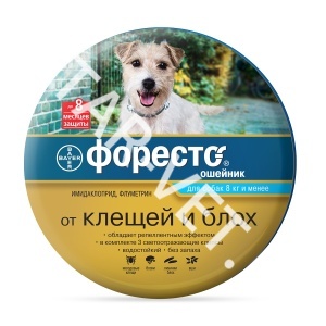 Выпускают Форесто ошейник для собак больше 8 кг длиной 70 см, для кошек и собак меньше 8 кг  — 38 см в герметично закрытых упаковках, помещённых поштучно в металлические коробки вместе с инструкцией по применению.