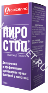 Пиро-Стоп — антипротозойный лекарственный препарат из группы имидазолина. Имидокарба дипропионат, входящий в состав препарата, активен в отношении Babesia bovis, Babesia ovis, Babesia bigemina, Babesia colchica, Babesia equi, Babesia divergens, Babesia canis, Babesia caballi, Babesia gibsoni, Francaiella colchica, Theileria annulata, Theileria sergenti, Theileria mutans, Theileria orientalis, Theileria ovis, Theileria recondita, Theileria tarandirangiferis, Nuttallia equi, Anaplasma marginale, Anaplasma ovis, а также Ehrlichia canis.