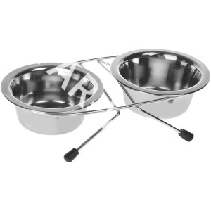 Конструкция подставки с мисками не дает корму высыпаться на пол. Ножки подставки снабжены резиновыми наконечниками, которые препятствуют скольжению. Посуда из нержавеющей стали абсолютно безопасна для здоровья.