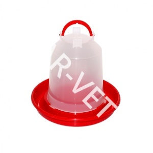 Практичная подвесная поилка, используется при выращивании практически любых видов домашней птицы. Изготовлена поилка из гигиеничного, высококачественного пластика, безопасного и при этом очень прочного. Питьевая вода заливается в емкость, затем сверху крепится тарелка после чего поилка переворачивается. В таком виде ее можно поставить на пол или при желании подвесить за предусмотренное на емкости кольцо.