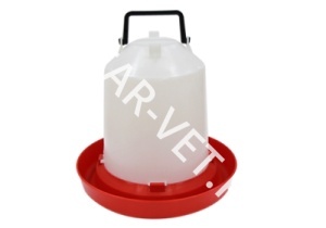 Практичная подвесная поилка, используется при выращивании практически любых видов домашней птицы. Изготовлена поилка из гигиеничного, высококачественного пластика, безопасного и при этом очень прочного. Питьевая вода заливается в емкость, затем сверху крепится тарелка после чего поилка переворачивается. В таком виде ее можно поставить на пол или при желании подвесить за предусмотренное на емкости кольцо.