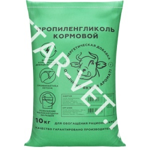 Пропиленгликоль кормовой Энергия - макроэнергетическая кормовая добавка к рациону высокопродуктивных коров для профилактики нарушений обмена веществ (кетоза), увеличения уровня глюкозы в крови, компенсации дефицита энергии в рационе. По внешнему виду добавка представляет собой сыпучий порошок, с запахом свойственным применяемым компонентам, но без затхлого, плесневелого и других посторонних запахов. Быстро увеличивает концентрацию глюкозы в крови и компенсирует дефицит энергии, особенно в период раздоя. Регулирует углеводно-жировой обмен и способствует: