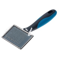 Пуходерка имеет частую метал. щетину, удаляет старую шерсть из шерсти и подшерстка, стимулирует волосяные луковицы, придает шерсти здоровый, пушистый вид. Избавляет от колтунов и спутывания. Мягкий корд.