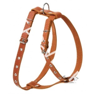 Шлейка кожаная, малая, однослойная, прошитая. Об.гр.65-85см; Об.шеи50-70см. Практичная и прочная шлейка для собак маленьких пород (чау-чау, миттельшнауцер). Декоративное тиснение. Есть дополнительная регулировка.  Производитель оставляет за собой право вносить изменения в конструкцию изделия, не ухудшающие его технические характеристики.
