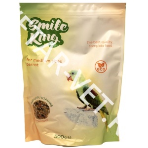 Корм сухой для средних попугайчиков Smile King 500 г (Беларусь) - изготовлен из экологически чистого, отборного сырья. Состав разработан с особым вниманием к пропорциям витаминов и необходимых продуктов для полноценного рациона средних попугаев.