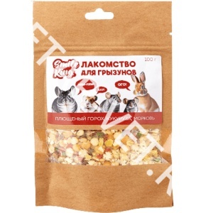 Натуральные лакомства для грызунов - Плющенный горох, кукуруза, морковь Smile King 100 г (Беларусь) - подходит для всех видов грызунов и является вкусным и полезным дополнением к основному рациону. Лакомства содержат натуральные витамины и ценные ингредиенты для укрепления иммунитета и поддержания здоровья питомцев.