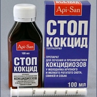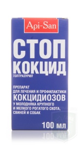 Показания: телятам, ягнятам, козлятам, поросятам, кроликам, щенкам собак и пушным зверям для лечения и профилактики кокцидиозов