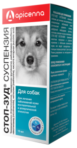 Показания: собакам для лечения воспалительных и аллергических заболеваний кожи (крапивница, атопический дерматит, экземы, диффузный нейродермит, расчесы, аллопеции, инфицированные дерматиты, укусы насекомых).