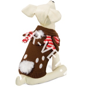 Изделие защитит вашего питомца от ветра и согреет в непогоду. Свитер имеет оригинальный дизайн: капюшон декорирован изящными рожками, а спинку украшает пушистый хвостик.