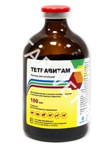 Действующее вещество: витамин А - 30 000 МЕ, витамин D3 - 15000 МЕ, витамин Е - 20 мг, витамин В12 - 20 мкг, селенит натрия - 0,15 мг