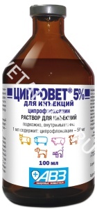 Показания: Лечение собак и кошек при инфекционных болезнях желудочно-кишечного тракта, дыхательных путей, мочеполовой системы, суставов, мягких тканей и кожи, пупочных инфекциях, атрофическом рините, бронхопневмонии, колибактериозе, сальмонеллезе, пастереллезе, микоплазмозах, других первичных и вторичных инфекциях бактериальной этиологии, возбудители которых чувствительны к ципрофлоксацину. Крупному рогатому скоту, овцам, козам, свиньям при инфекционных болезнях желудочно-кишечного тракта, дыхательных путей, мочеполовой системы, суставов, мягких тканей и кожи, некробактериозе, пупочных инфекциях, атрофическом рините, бронхопневмонии, колибактериозе, сальмонеллезе, пастереллезе, микоплазмозе, синдроме мастит-метритагалактия (ММА) и других инфекциях, возбудители которых чувствительны к ципрофлоксацину.