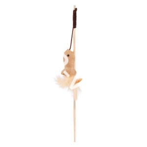 Удочка-дразнилка для кошек из дерева с игрушкой в виде птички из джута и перьев. Игрушка изготовлена из натуральных материалов, в том числе джута - достаточно прочного материала, безопасного для здоровья вашей кошки. Длина ручки: 400мм, размер игрушки: 40*20*75/170мм.