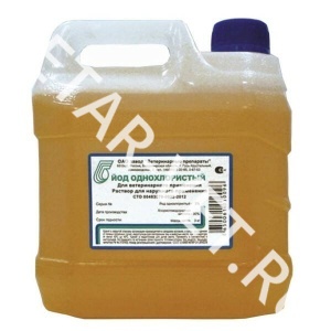 Йод однохлористый предназначен для влажной дезинфекции, дезинвазии поверхностей животноводческих, птицеводческих помещений и всего оборудования в них, холодильных камер, обеззараживания скорлупы яиц, а также для аэрозольной дезинфекции воздуха животноводческих и птицеводческих помещений, лечения животных, пораженных стригущим лишаем и преддоильной обработки вымени коров.