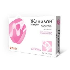 Входящий в состав препарата синтетический гормон-прогестаген – диеногест действует на гипоталамо-гипофизарную систему, блокируя секрецию гонадотропных гормонов фолликулостимулирующего и лютеинизирующего), препятствует развитию фолликулов, синтезу эстрогенов и появлению половой охоты. Применение препарата самкам до начала течки предотвращает овуляцию, а в начале фолликулярной фазы (первый-третий день течки) приводит к ее прекращению. Период полувыведения диеногеста составляет 6-11 ч. Около 86 % введенной дозы препарата выводится в течение 5 дней, причем основная ее часть экскретируется с мочой в первые 24 ч. Жанилон Микро по степени воздействия на организм относится к веществам малоопасным (4 класс опасности) согласно ГОСТ 12.1.007, в рекомендуемых дозах не оказывает тератогенного, сенсибилизирующего и гепатотоксического действия.