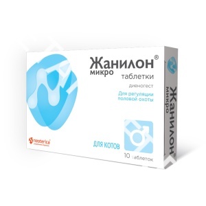 Входящий в состав препарата синтетический гормон-прогестаген – диеногест действует на гипоталамо-гипофизарную систему, блокируя секрецию гонадотропных гормонов фолликулостимулирующего и лютеинизирующего), препятствует развитию фолликулов, синтезу эстрогенов и появлению половой охоты. Применение препарата самкам до начала течки предотвращает овуляцию, а в начале фолликулярной фазы (первый-третий день течки) приводит к ее прекращению. Период полувыведения диеногеста составляет 6-11 ч. Около 86 % введенной дозы препарата выводится в течение 5 дней, причем основная ее часть экскретируется с мочой в первые 24 ч. Жанилон Микро по степени воздействия на организм относится к веществам малоопасным (4 класс опасности) согласно ГОСТ 12.1.007, в рекомендуемых дозах не оказывает тератогенного, сенсибилизирующего и гепатотоксического действия.