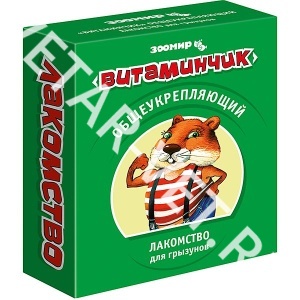 Лакомство Зоомир общеукрепляющее для грызунов Витаминчик, 50 г Лакомство для мелких декоративных грызунов (хомяков, крыс, мышей, песчанок), доставляющее им вкусовое наслаждение и способствующее общему укреплению организма. Благодаря входящимв состав лакомым и полезным компонентам: природному витаминному комплексу из лесных ягод, натуральным фруктовым компонентам, являющимся кладезем различных микро- и макроэлементов, сушеным рачкам гаммаруса, а также раковинам моллюсков (источник биогенного кальция) Ваш зверек получит не только привлекательное лакомство, но и полезное дополнение к питанию. Состав: Мука из семян злаковых растений, плоды рожкового дерева, гаммарус естественной сушки, кормовой мел, измельченные раковины моллюсков, экстракты лесных ягод. Рекомендации по кормлению: Давать в качестве лакомого и полезного дополнения к питанию отдельно или вместе с основным кормом.