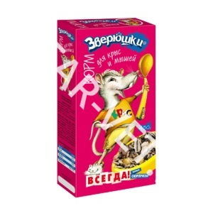 Корм «ЗВЕРЮШКИ» для крыс и мышей изготовлен из качественных отборных продуктов.